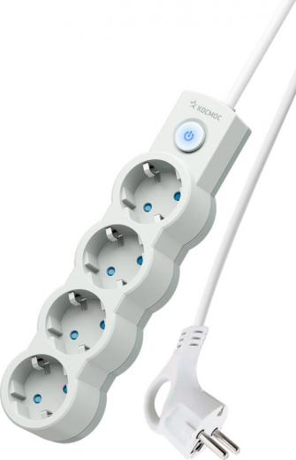 Космос Удлинитель 4х1.5м ПВС 3х0.75 с защ. шторк. с заземл. IP20 с выкл. 220В 10А 2200Вт бел. YKsm1.5m-4g-Z-V10A-W